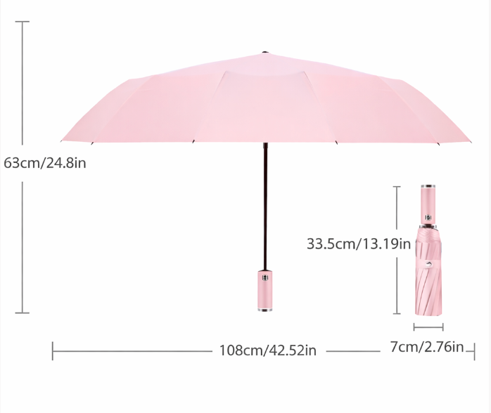 Open or close the umbrella instantly at the press of a button. Designed for one-handed use, this smooth automatic mechanism delivers effortless control when stepping out of cars, trains, or busy streetsβfast, reliable, and built for everyday convenience.